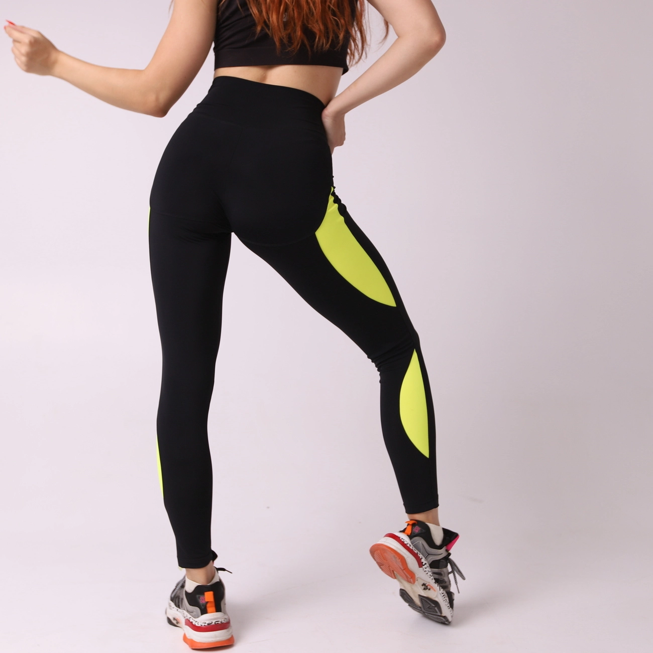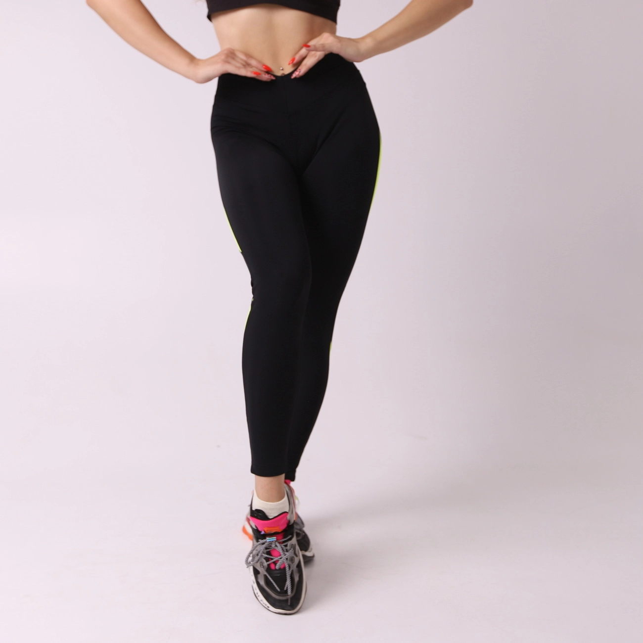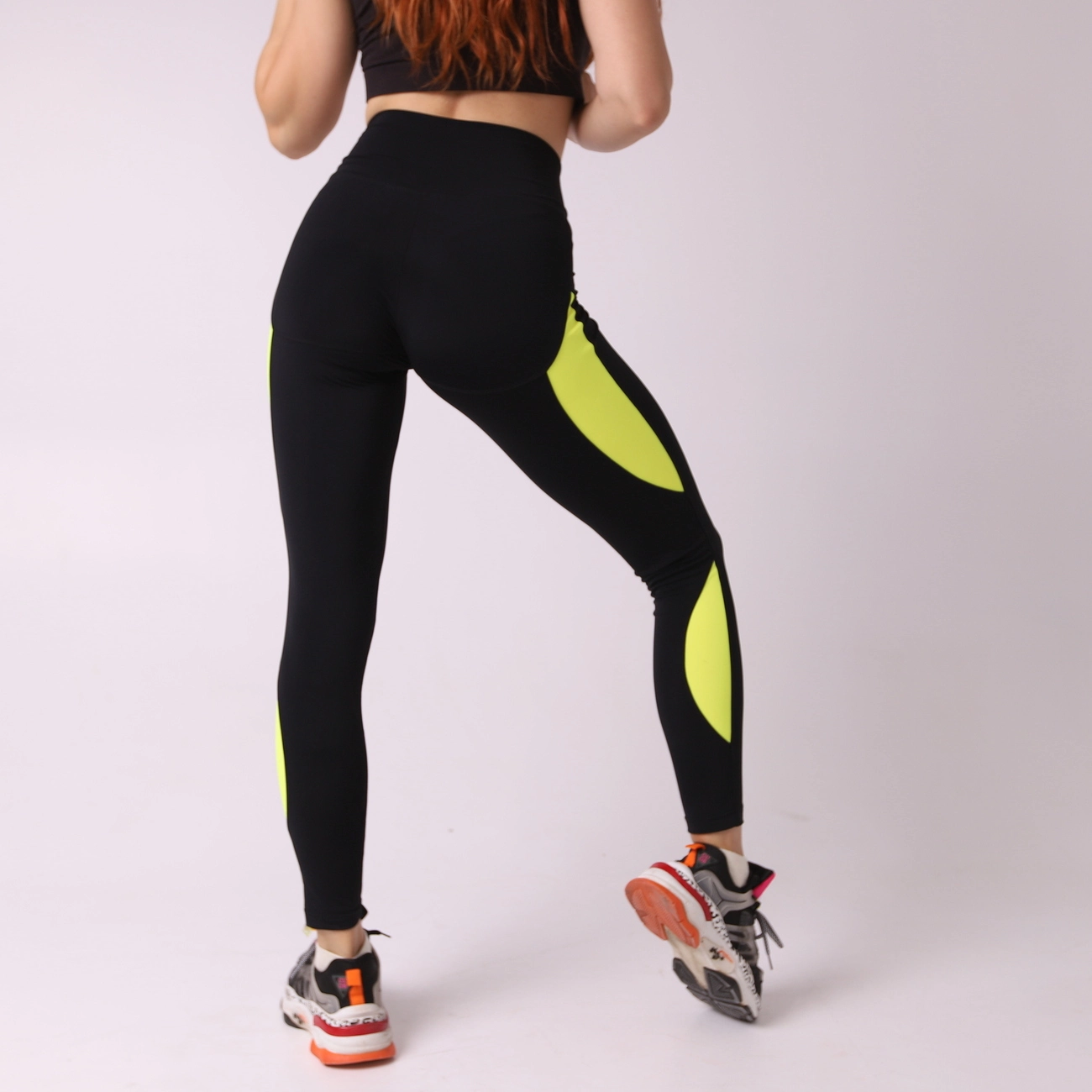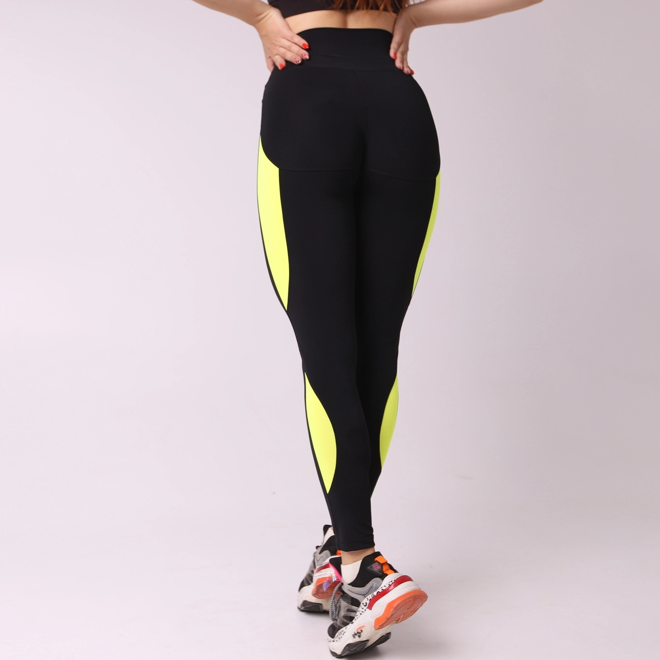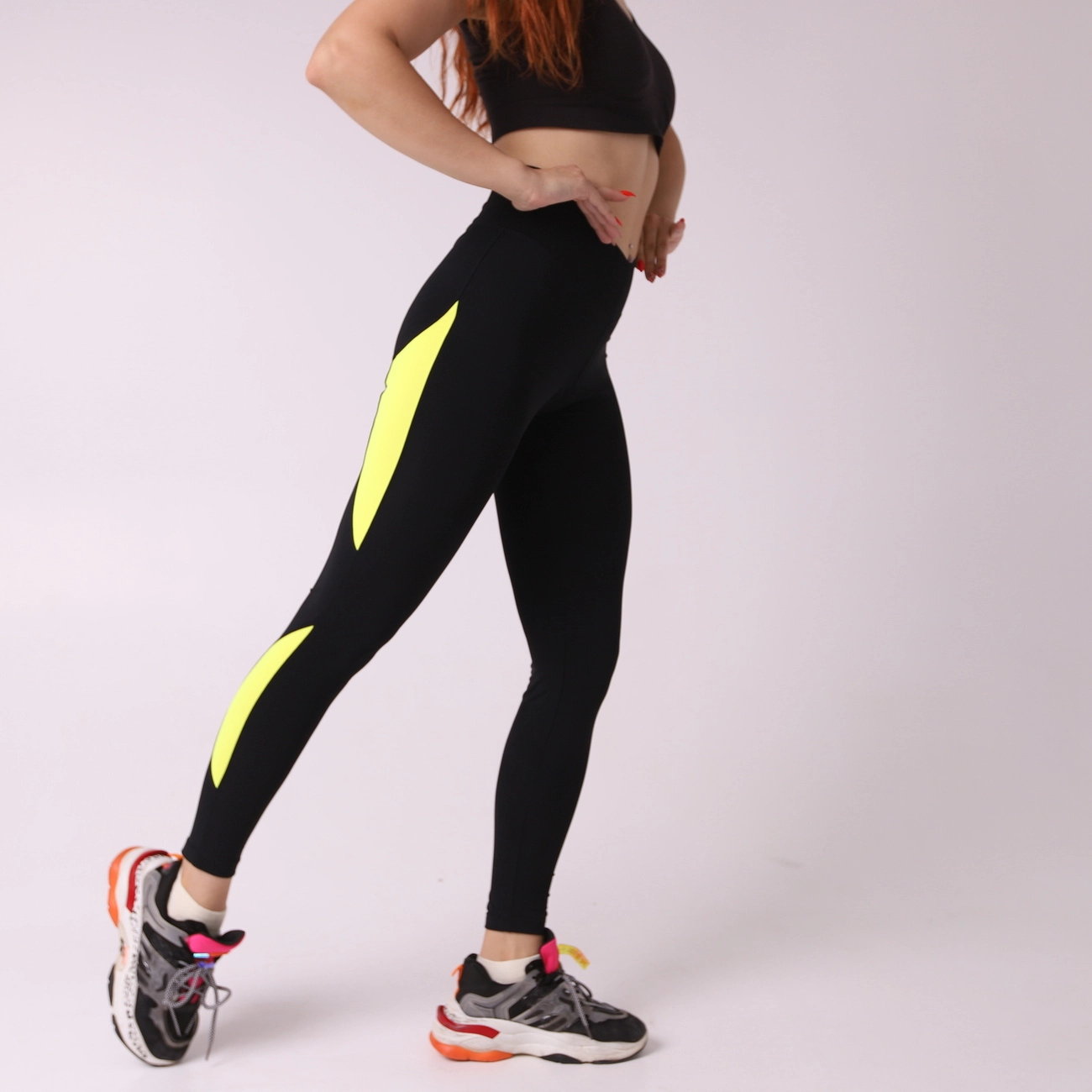 Черные лосины с яркими желтыми неоновыми вставками по боках - не оставят тебя незамеченной! Изготовлены из бифлекса (80% нейлон, 20% спандекс). Скрывают недостатки, удобная высокая посадка, отличная утяжка, не сковывают движения. При занятии спортом, вы будете чувствовать себя комфортно и уверенно, так как они не просвечиваются!