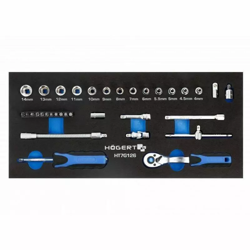 Набор инструментов с трещоткой 1/4" 34 шт. ложемент Eva Hogert