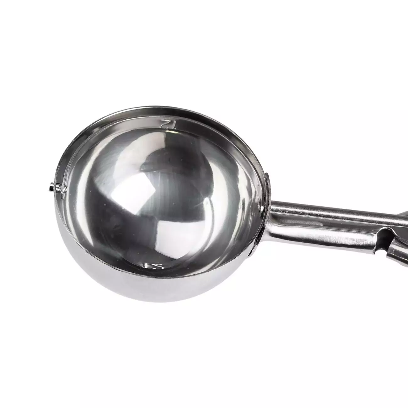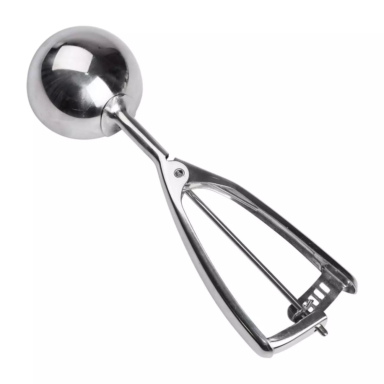 Виготовлена з неіржавкої сталі, ложка оснащена пружинним механізмом, який забезпечує швидке та зручне виштовхування кульок. Це прискорює процес приготування і подачі десертів, роблячи його більш ефективним.