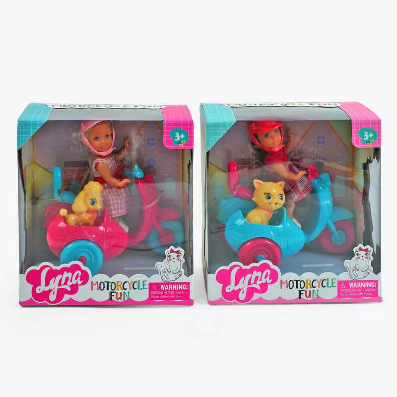 Лялька 4608 (48/2)2 види, 12 см, знімне взуття, шолом, мотоцикл, улюбленець, в коробці