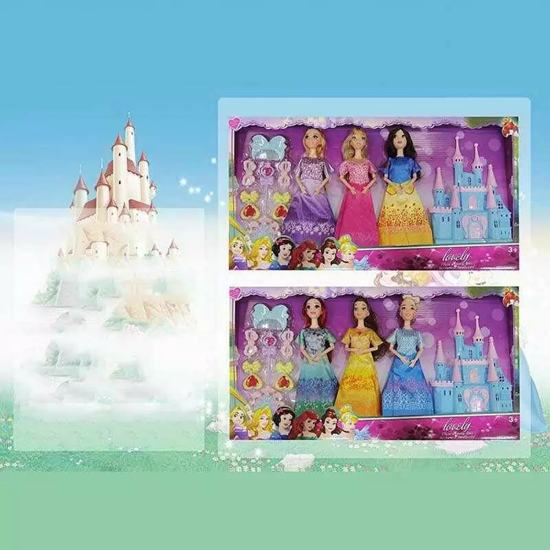 Home > Catalog > Toys > Dolls > Набір ляльок K 016 A-1 (36/2) 3 ляльки, принцеси, знімний одяг, руки та ноги з точками артикуляції, аксесуари, замок, висота 28 см, в коробці wholesale