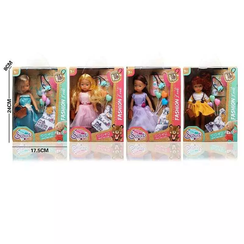 Лялька LK 2505 (96/2) 4 види, 20 см, гумова, імітація скляних очей, взуття, аксесуари, одяг, в коробці, ВИДАЄТЬСЯ ТІЛЬКИ МІКС ВИДІВ