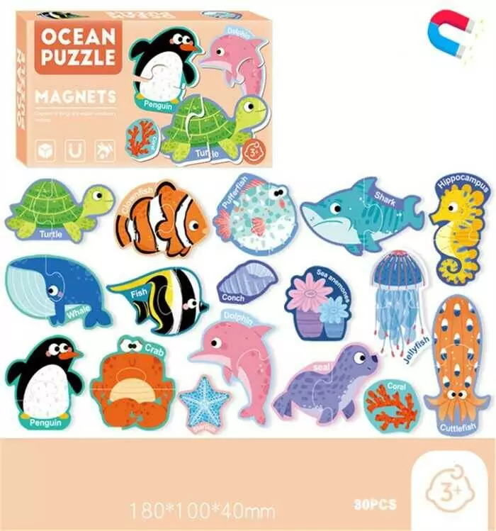 Магнітні пазли C 73800 (96) “Морські мешканці”, назви англ. мовою, 30 елементів, в коробці
