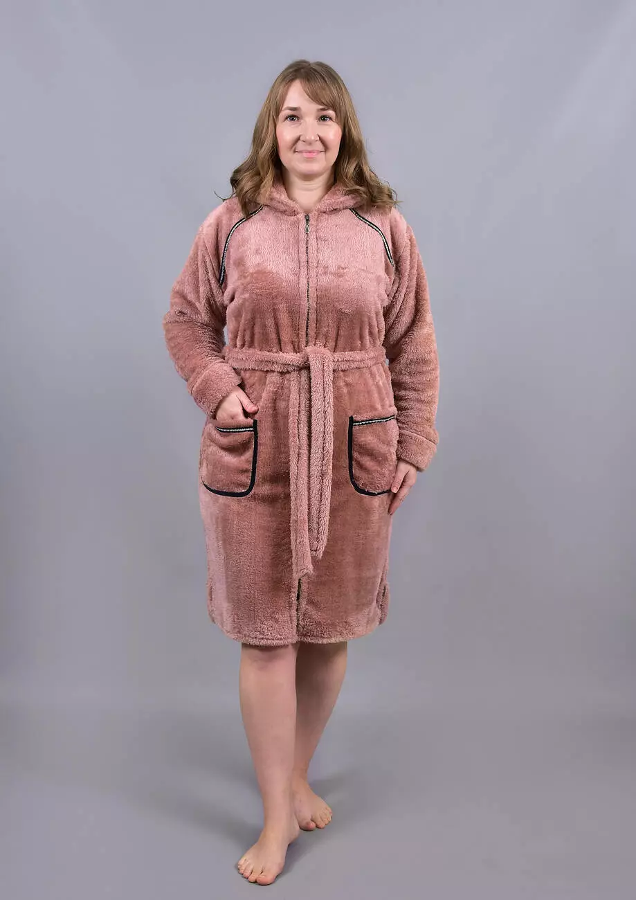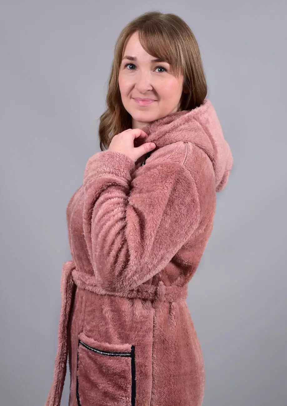 Стильний і затишний халат із м'якої махри софт — ідеальний вибір для прохолодних вечорів та комфортного відпочинку. Легка текстура тканини "дихає", забезпечуючи максимальний комфорт. Модель із капюшоном, зручними кишенями та поясом для регулювання посадки.