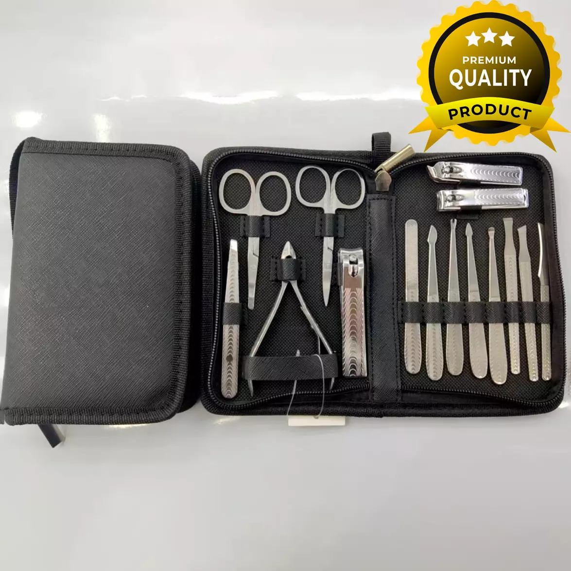 Премиальный маникюрный набор 15в1 – это универсальное решение для полноценного ухода за руками и ногами. В комплект входят ножницы, кусачки, пинцет, пилочки, пушеры и аксессуары для обработки кутикулы и ногтей.