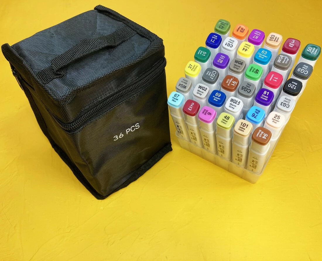У наборі 36 маркерів різних кольорів.