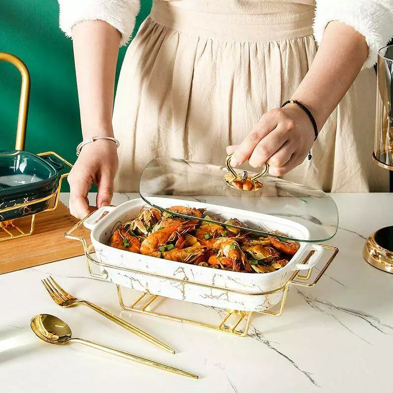 будь-який інтер'єр. Страва біла, зроблена під мармур, а підставка –