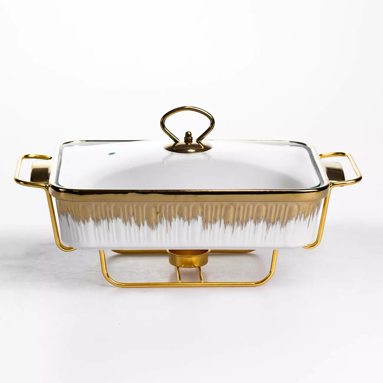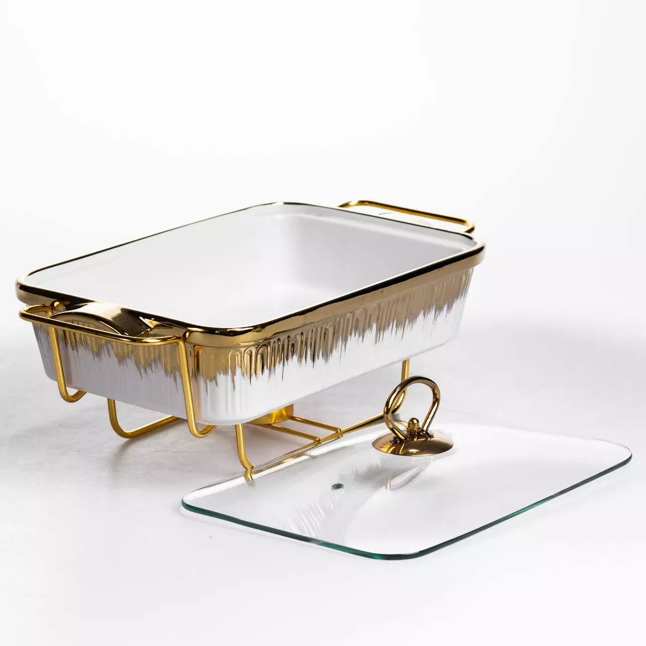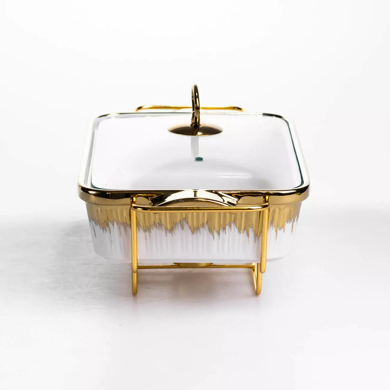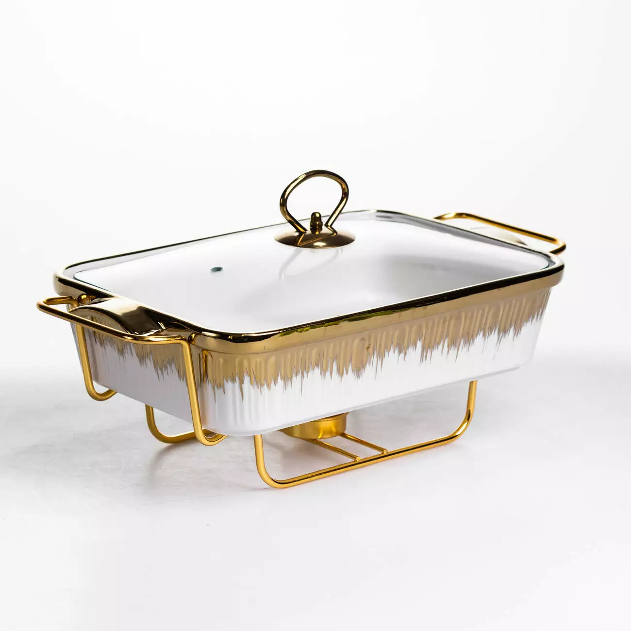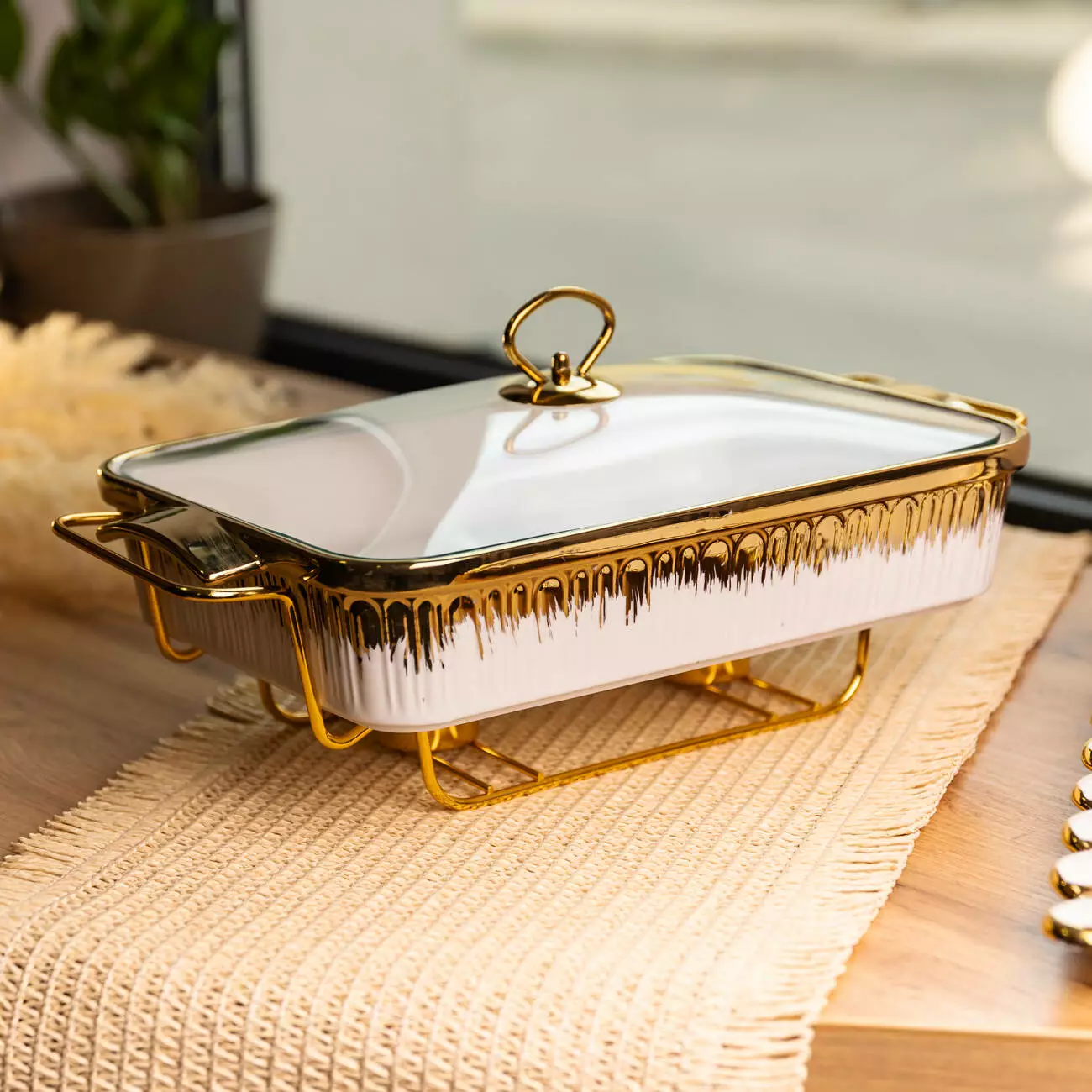Мармітниця порцелянова 1.5 л на золотистій металевій підставці з підігрівом 35,5×19×15,5 см