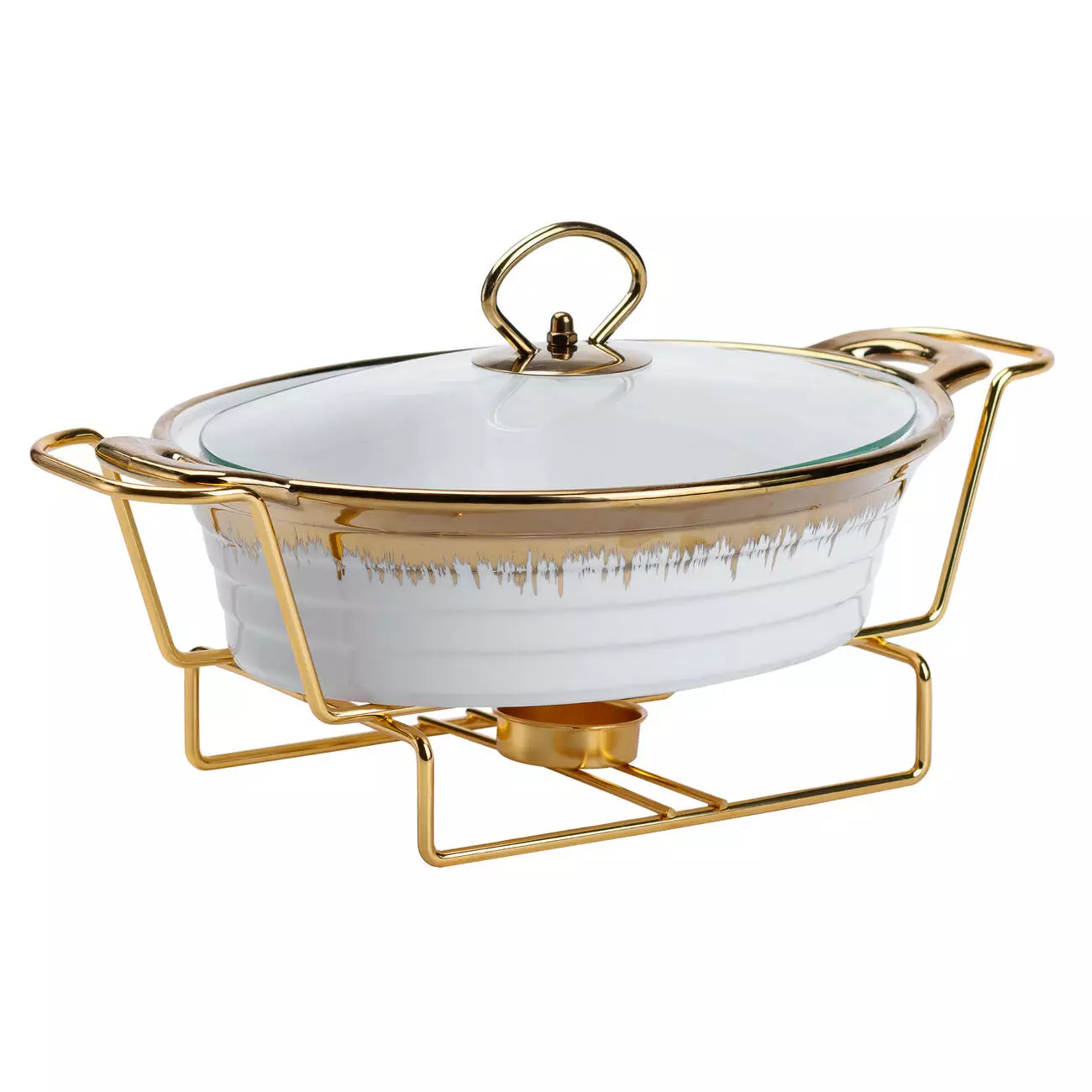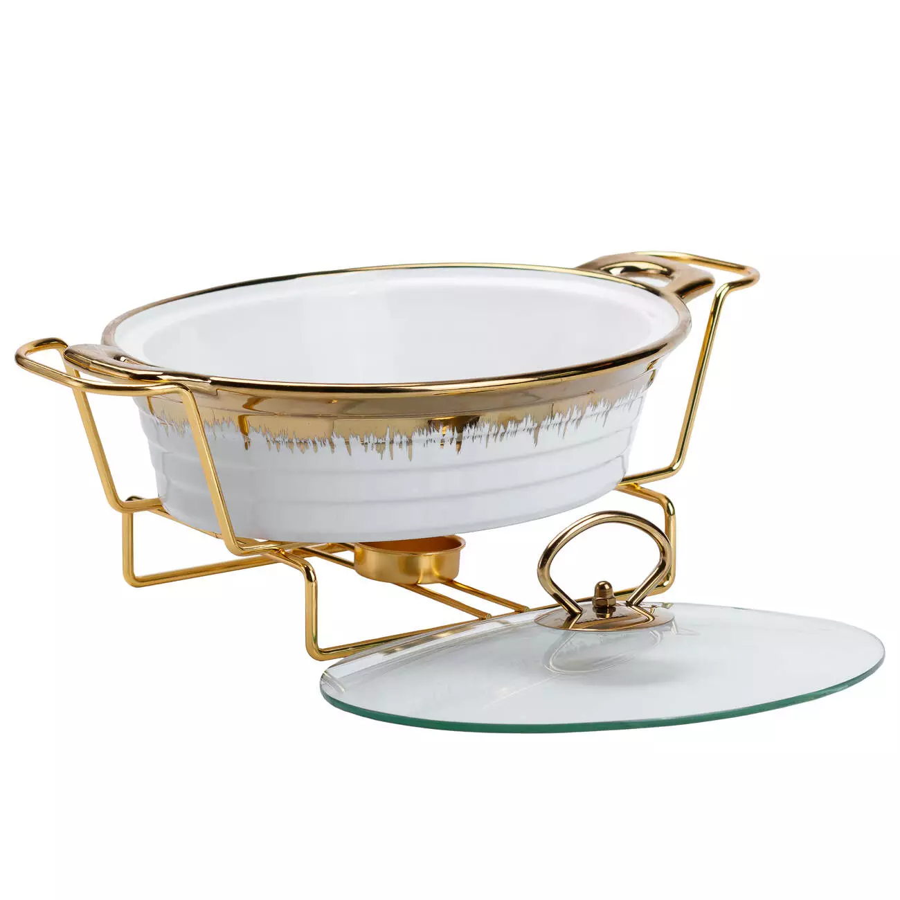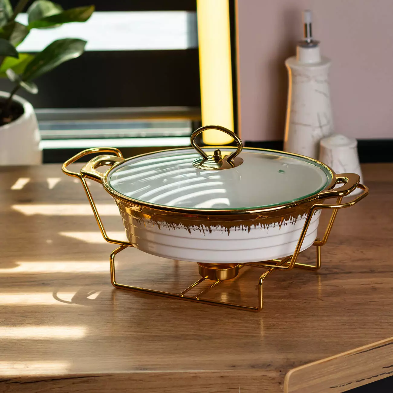 Мармітниця порцелянова 1 л зі скляною кришкою, золото