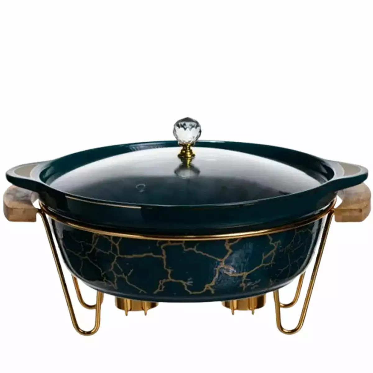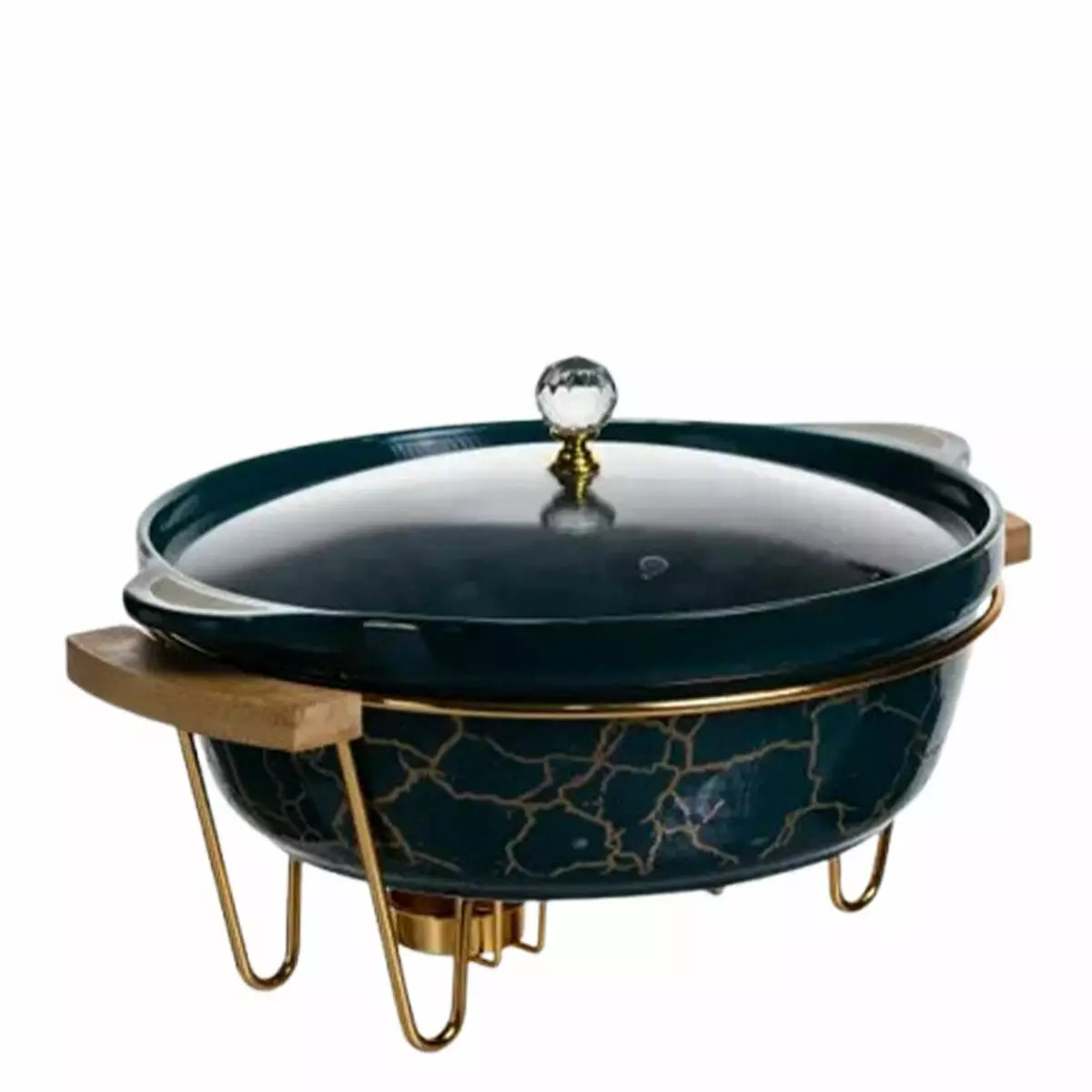 Порцелянова мармітниця об'ємом 2 літри — ідеальне рішення для зберігання та сервірування гарячих страв: супів, соусів, м'ясних та овочевих гарнірів. Корпус виконаний з якісної порцеляни з декоративною «мармуровою» текстурою, що надає виробу стильного та святкового вигляду. Дерев'яні ручки забезпечують комфорт при перенесенні та мінімізують ймовірність отримання опіків. Підходить для сервірування столу на сімейних обідах та урочистостях.