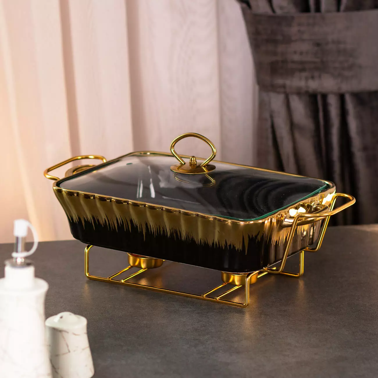 для подачі гарячих страв безпосередньо на стіл. Чорне покриття