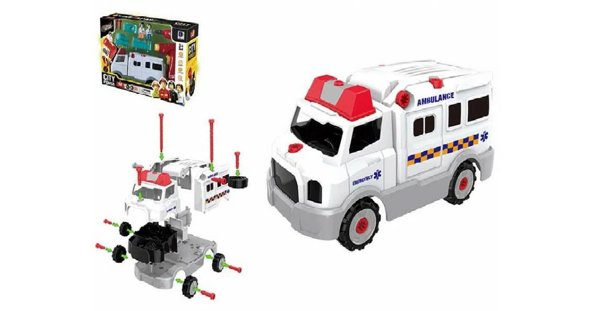 Машина-конструктор 661-415 являє собою модель машини швидкої допомоги, яка розбирається і збирається за принципом конструктора, за допомогою іграшкової викрутки і Шуроповерти на батарейках, які передбачені в комплекті. Модель відмінно деталізована, не має гострих кутів. Особливості моделі: збирається і розбирається за принципом конструктора; в зібраному вигляді являє собою повноцінну машинку для гри; докладна деталізація; відкриваються задні двері; звукові і світлові ефекти; Розміри / габарити: 24 см 11 см 14 см Упаковка: Коробка Вік: від 3 років Швидка володіє звуковими і світловими ефектами, тому грати з нею буде ще цікавіше. Діти з задоволенням будуть розкручувати і закручувати гайки, представляючи себе справжніми майстрами машинного справи. Шуроповерт працює від 2-х батарейок типу «АА» 1.5V (не входять в комплект) Ефекти працюють від 2-х батарейок типу «AG13» (в комплекті). У комплекті: машинка; викрутка; шуроповерт; ігрові фігурки лікарів (5 см); інструкція.