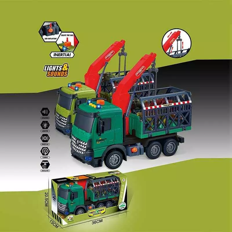 Спецтехніка 687-61 B (24/2) 2 види, підсвічування, звукові ефекти, інерція, рухомі деталі, фігурка динозавра, в коробці