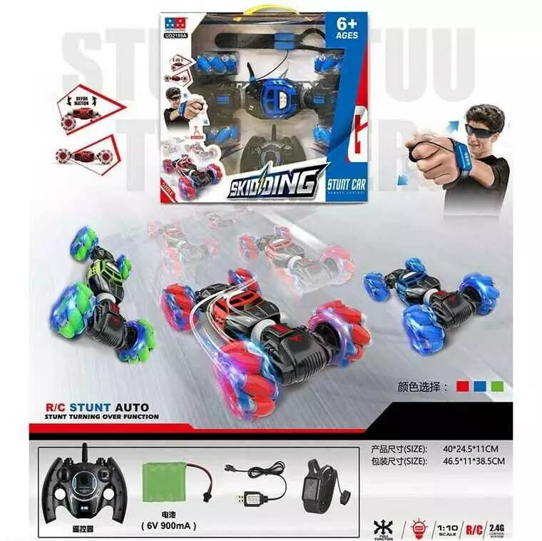 Машина на радіокеруванні UD 2199 A (8) 3 кольори, акум. 6V, пульт 2.4G + сенсорний браслет, 2 USB-кабелі, підсвічування, звуки, зміна положення корпус