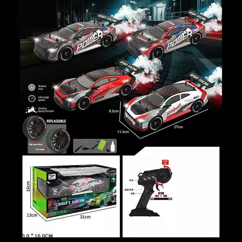 Машина на радіокеруванні YF 668 RC 16 (24) акумулятор 7.4 V, пульт 2.4 GHz, дрифт, 4WD, масштаб 1:16, підсвічування, парогенератор, змінні колеса,в ко