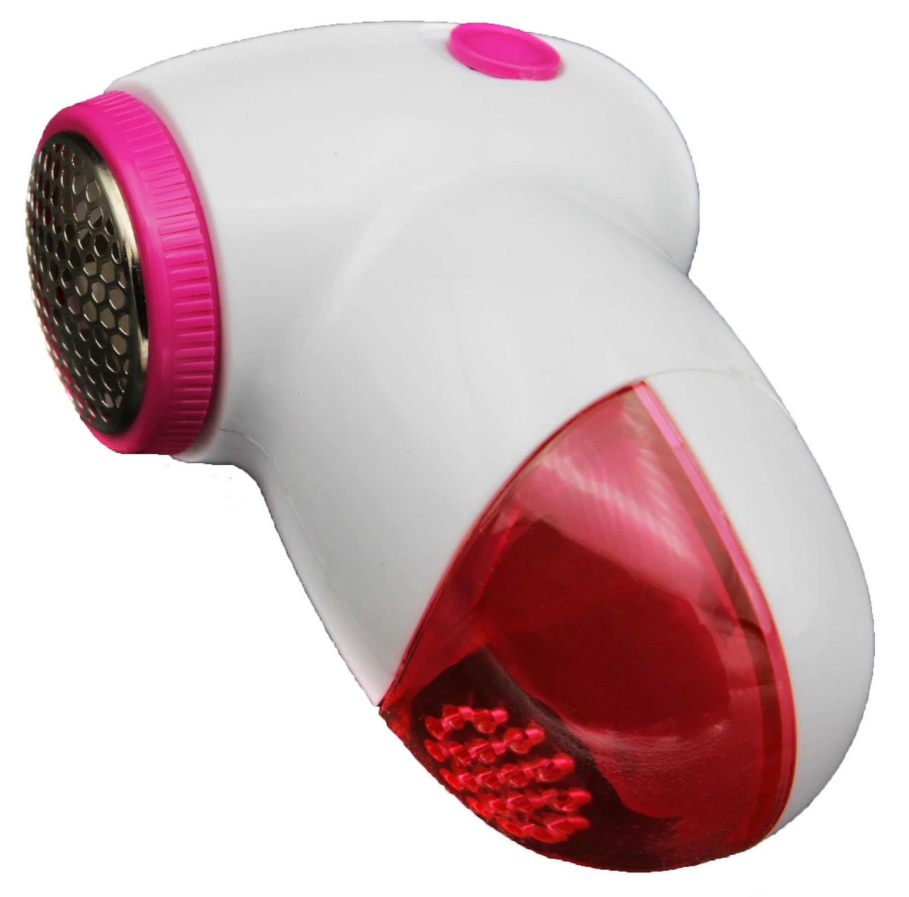 Машинка для удаления катышек с одежды. Машинка удаляет катышки при помощи сетки с мелкими отверстиями, края которых остро заточены. Позади сетки находится вращающийся нож. Стальные лезвия. Контейнер для сбора катышек. Тип питания - 2 батарейки типа "АА". Батарейками не укомплектован. Размер: 8х9х5 см