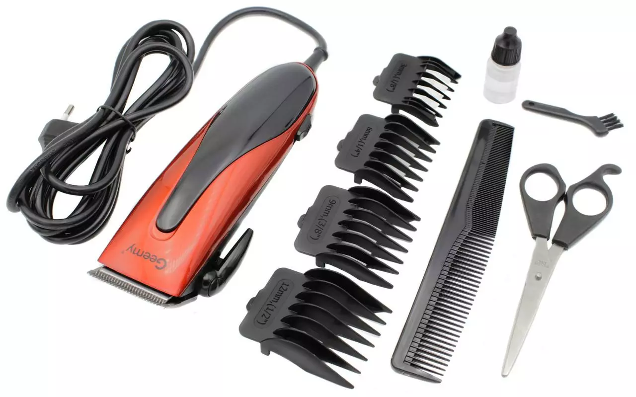 Машинка для стрижки Geemy GM-1012, 4 насадки для стрижки и ножницы.