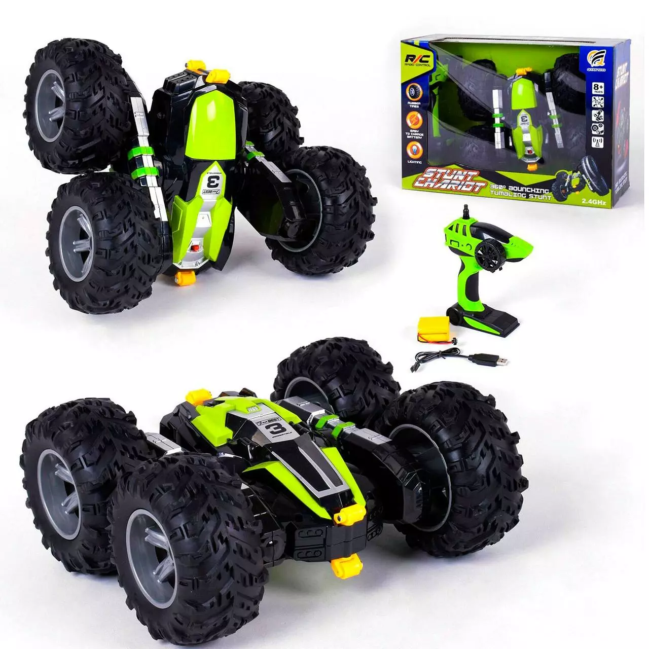 Машинка-перевертыш на радиоуправлении Kimi со световым эффектом Черно-салатовая 6968154080900