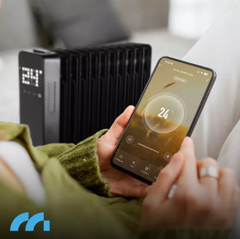 Обогревателем можно управлять дистанционно через смартфон. Просто настройте устройство на домашнюю сеть Wi-Fi.