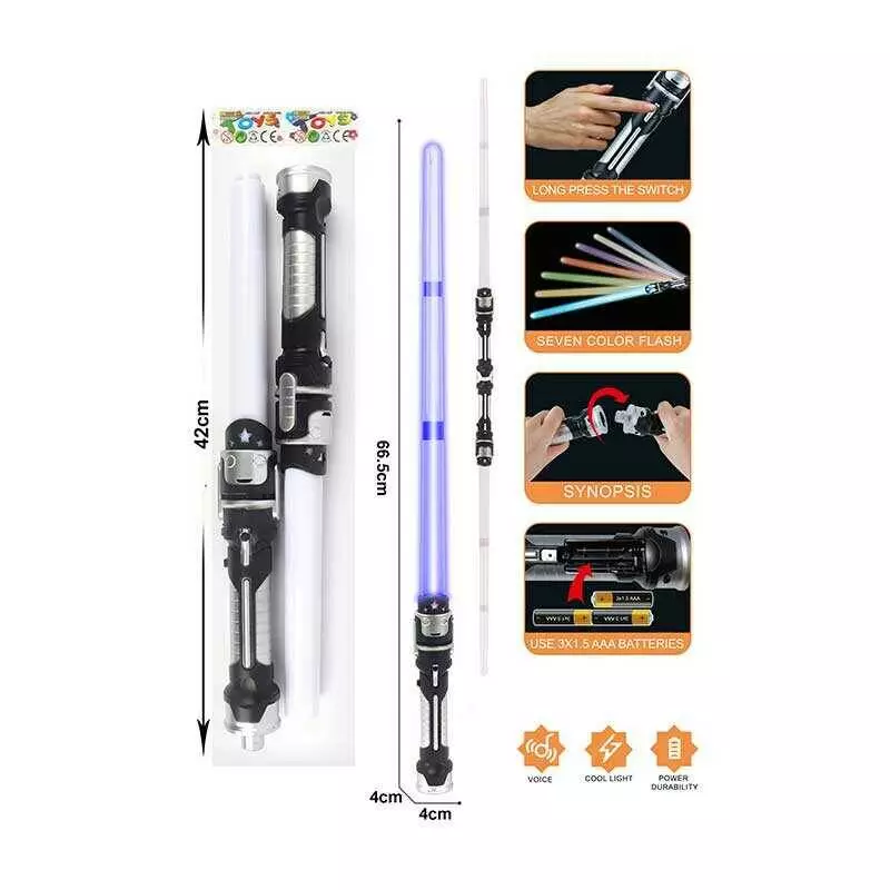 Меч 3208 (144/2) 2 штуки, складається в один великий меч, підсвічування, звуки, в пакеті