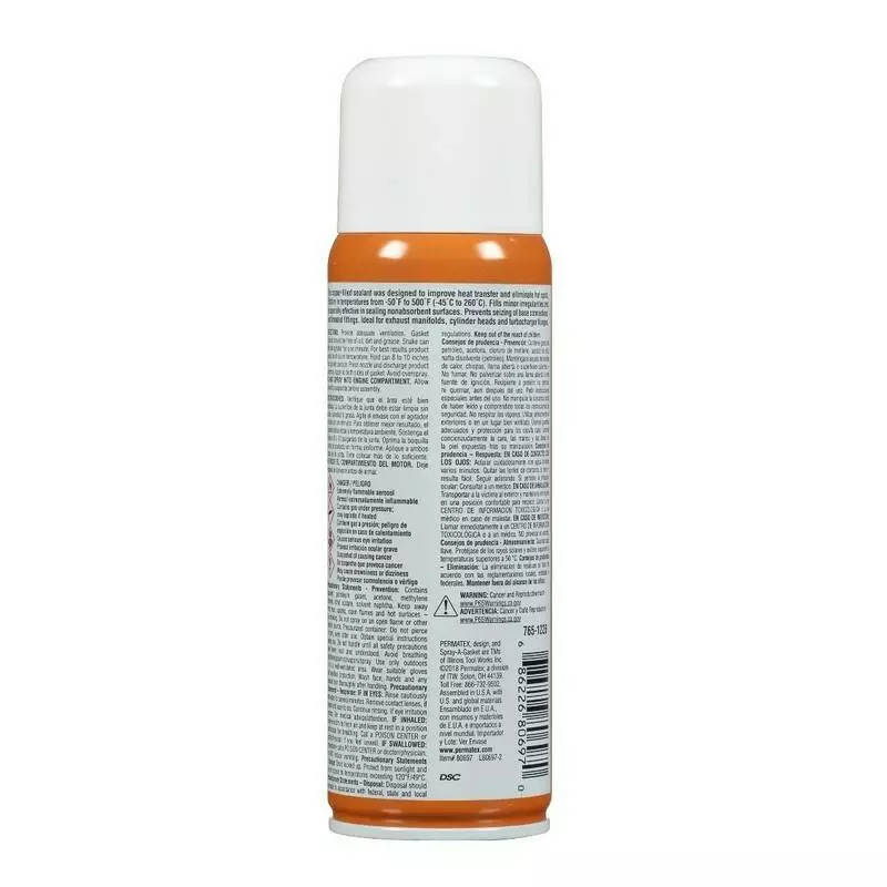 Медный спрей-герметик благодаря аэрозольной структуре хорошо заполняет все мелкие дефекты на поверхностях, которые соединяются. Клеевые свойства продукта позволяют предварительно зафиксировать прокладку в нужном месте и положении, что положительно влияет на качество сборки. Наполнение герметика медной пудрой дает эффективное рассеивание тепла, предотвращая тем самым выгорание прокладки. В процессе демонтажа прокладка легче отстает от поверхности металла. Допустимый температурный диапазон от -45°С до +260°С. Спрей-герметик с медью хорошо выдерживает воздействие автомобильных масел и топлива.