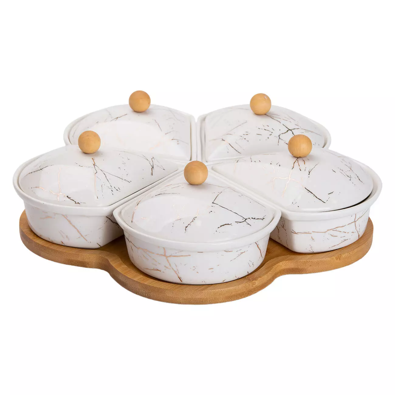 Менажниця виготовлена з якісних матеріалів, бамбукова підставка