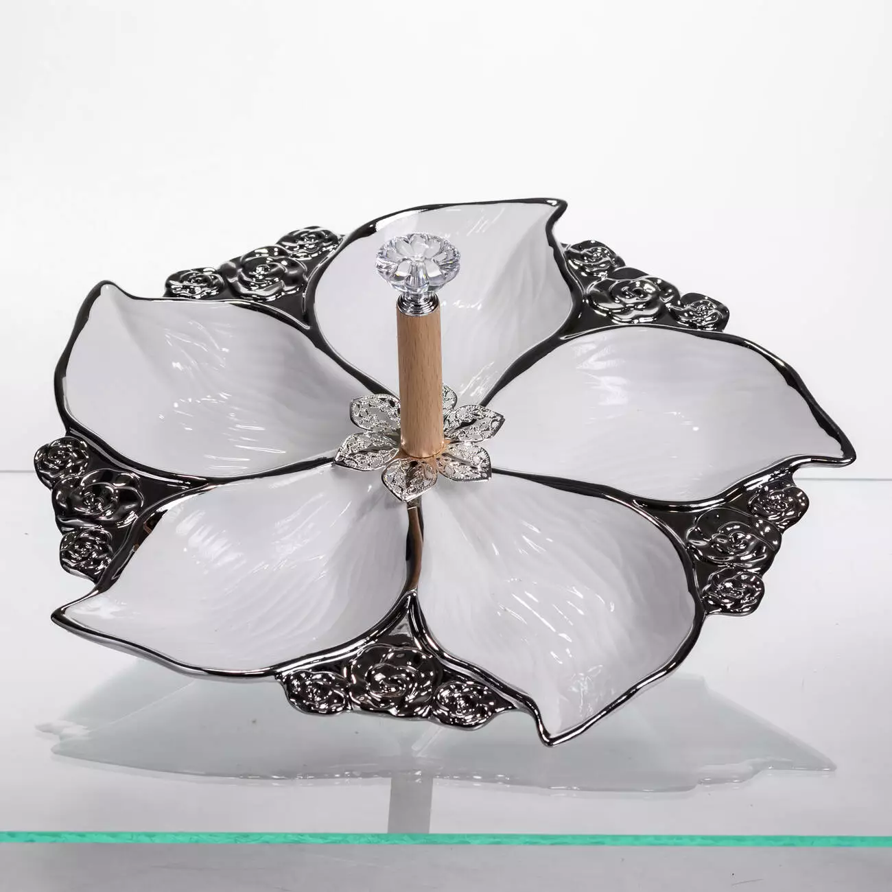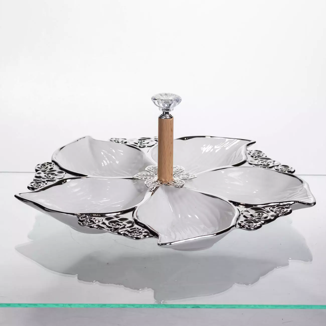Поєднання продуманої форми й практичного дизайну робить менажницю універсальною для подачі різних закусок, горіхів, фруктів чи солодощів. Її можна використовувати як у домашньому сервіруванні, так і для декору святкового столу.