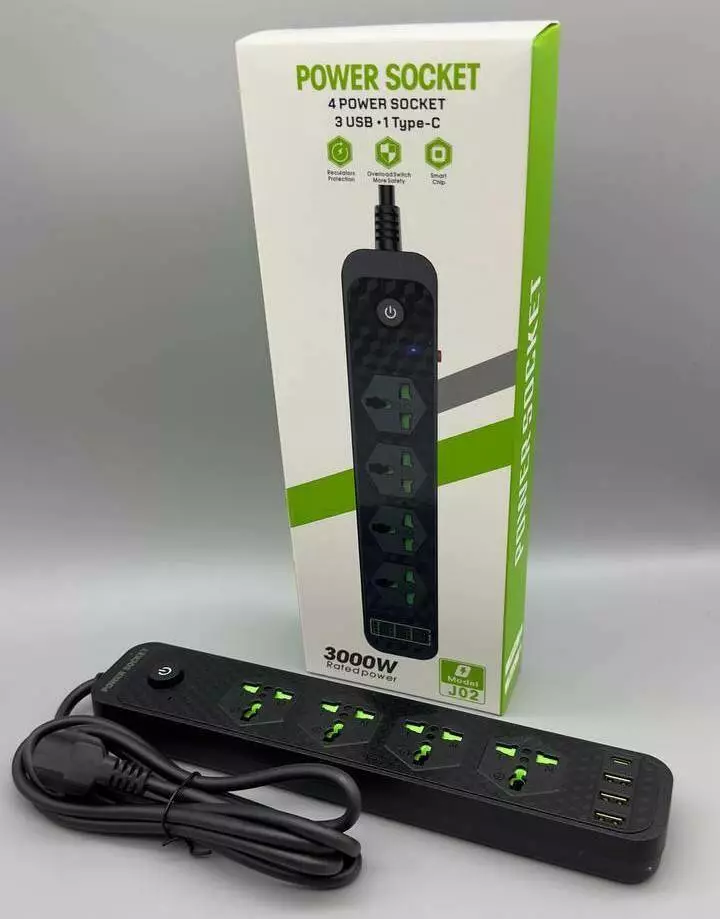 Мережевий фільтр J02 3000 W (4*220V+3USB+1*Type-C)