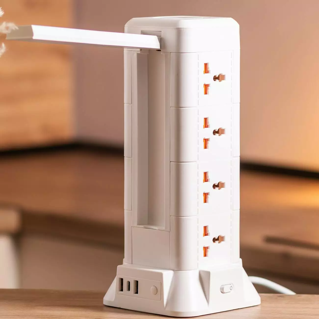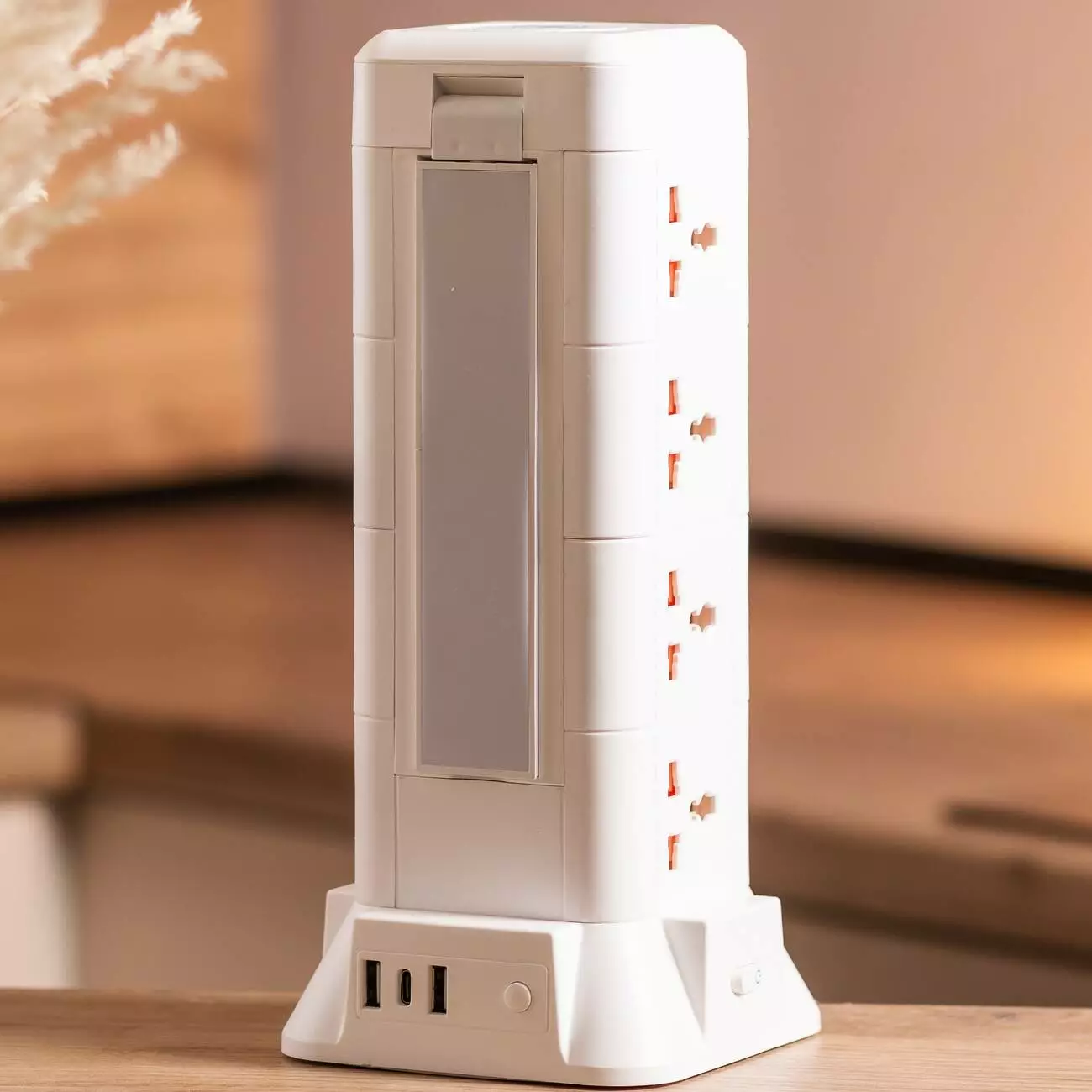 Мережевий фільтр-подовжувач Tower - багатофункціональний пристрій для зручного доступу до електроживлення. Фільтр має конструкцію вежі та 12 розеток, що дозволяє значно економити місце. Також передбачені 2 порти USB-A та роз'єм USB-C. Пристрій підтримує бездротове заряджання та технологію Power Delivery.
