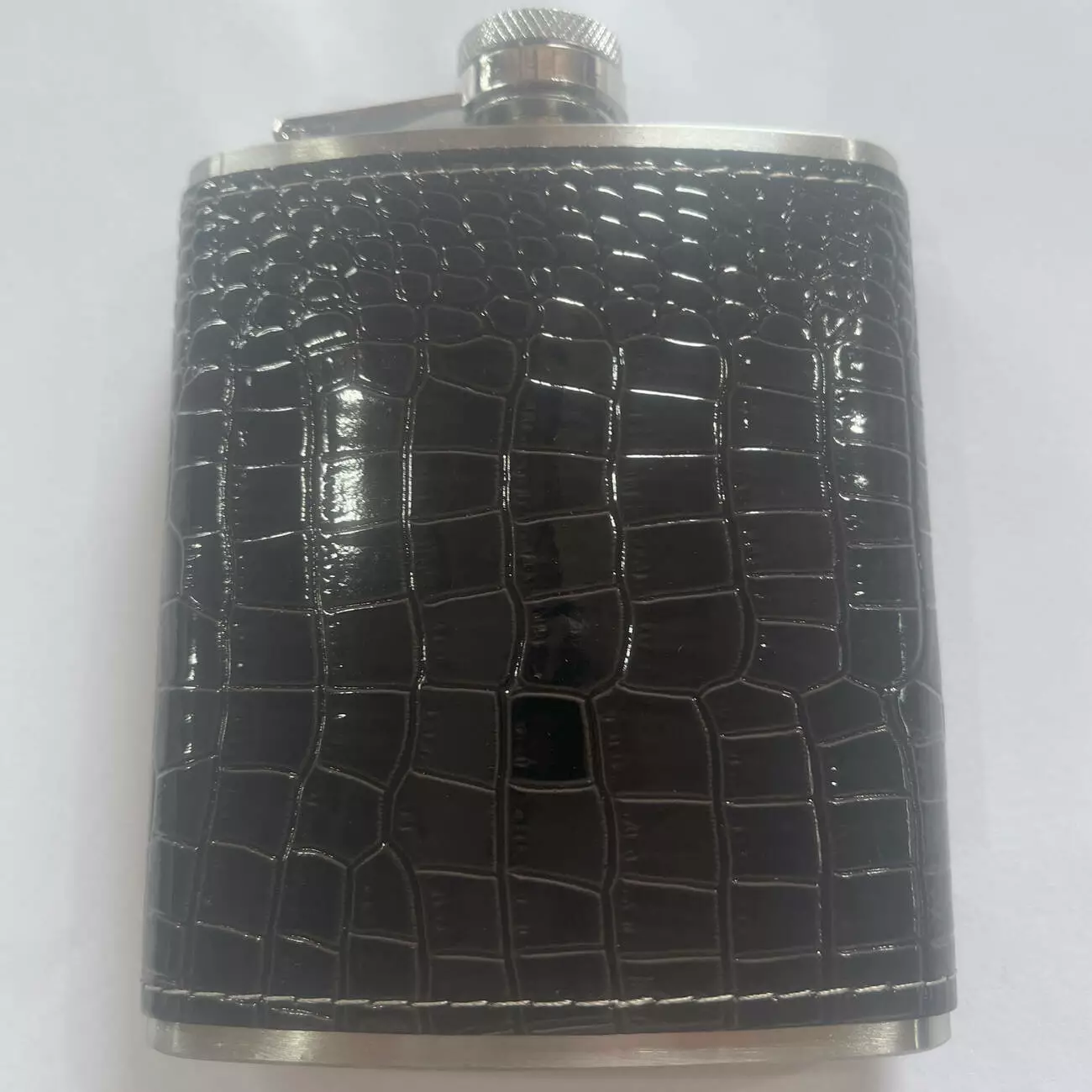 Эта стильная металлическая фляга объёмом 7oz (210 мл) сочетает в себе утончённый дизайн и практичность. Корпус изготовлен из прочной нержавеющей стали, а внешняя поверхность покрыта декоративным рельефом, имитирующим кожу крокодила — это придаёт изделию роскошный и солидный вид.