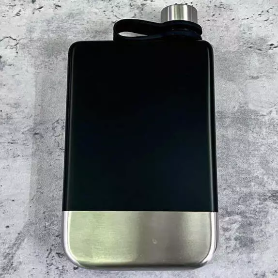 Металлическая фляга 8 oz с силиконовым ремешком и матовым покрытием – компактный и удобный аксессуар для напитков. Корпус изготовлен из прочной нержавеющей стали и имеет стильный комбинированный дизайн: верхняя часть окрашена в матовый черный цвет, а нижняя выполнена в классическом металлическом стиле.
