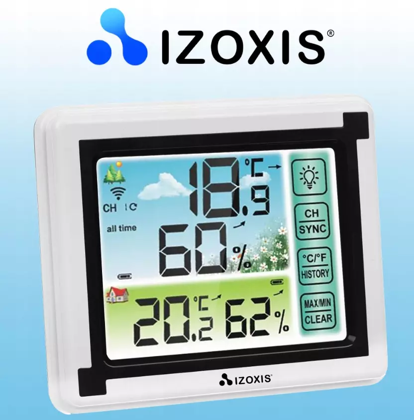 Погоду нельзя изменить, но ее можно предсказать. Представленная метеостанция – компактное устройство, которое должно быть в каждом доме. Она имеет множество полезных функций, среди которых: измерение максимальной и минимальной, внутренней и внешней температуры в °C/°F, а также влажности воздуха в %.