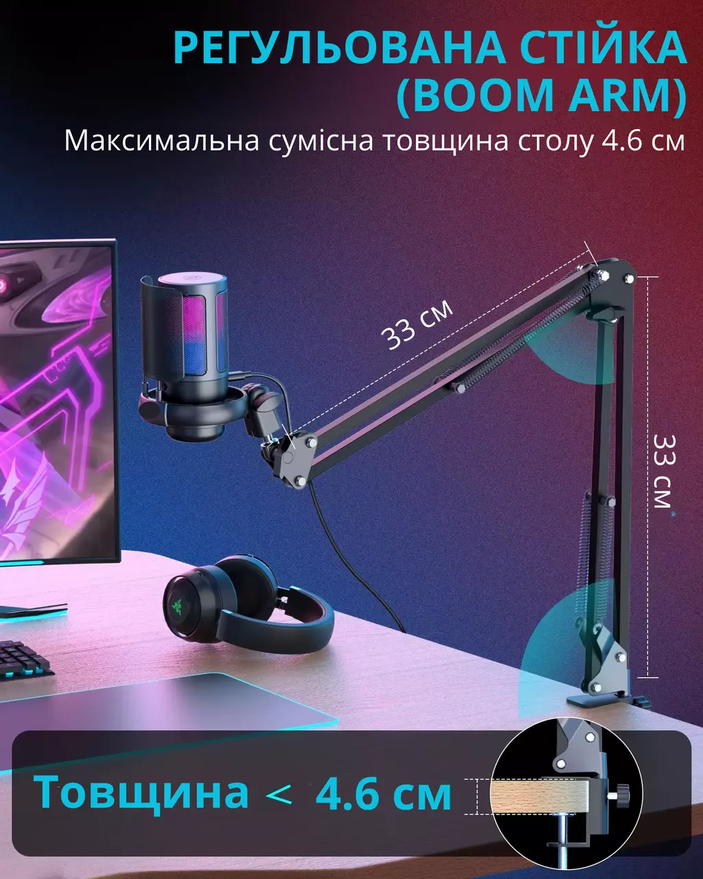 Встановлення: настільна стійка Boom Arm