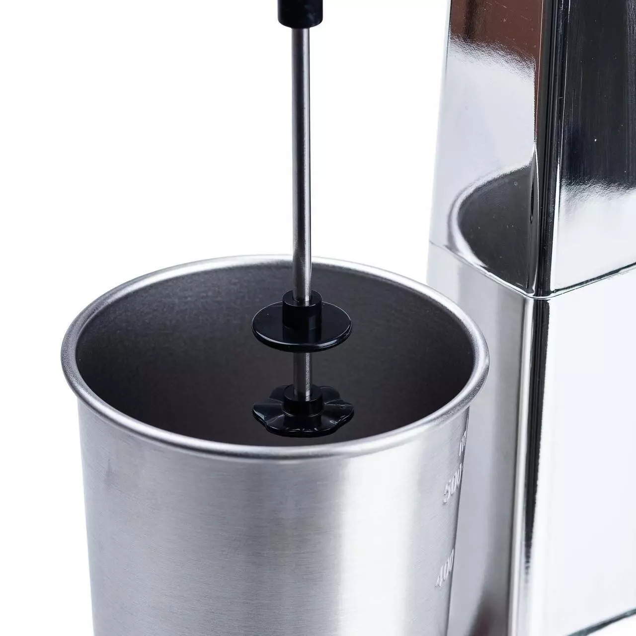 Конструкція мілкшейкера не передбачає фіксації чаші під час роботи. Занурення віночка у склянку здійснюється вручну.