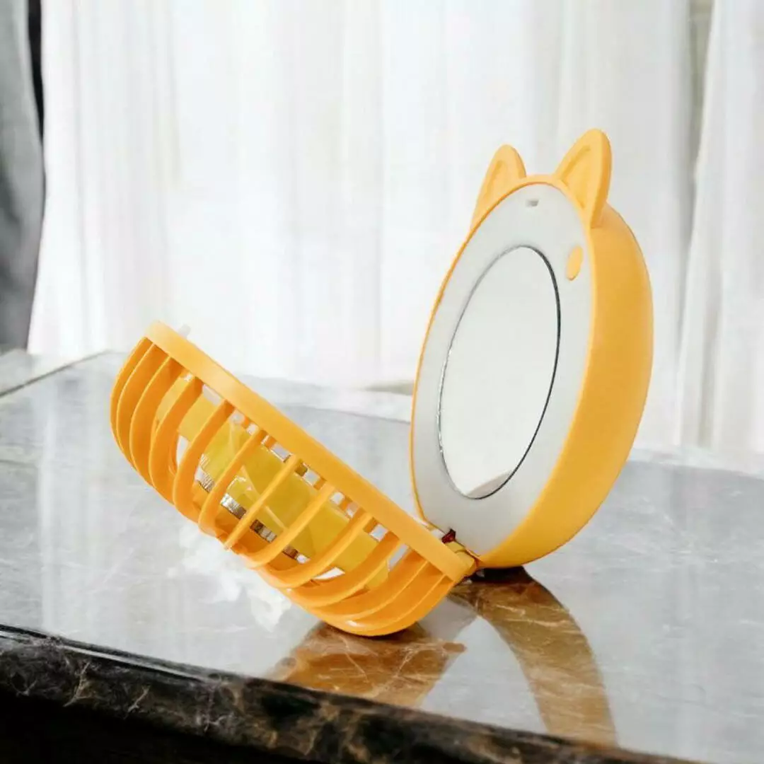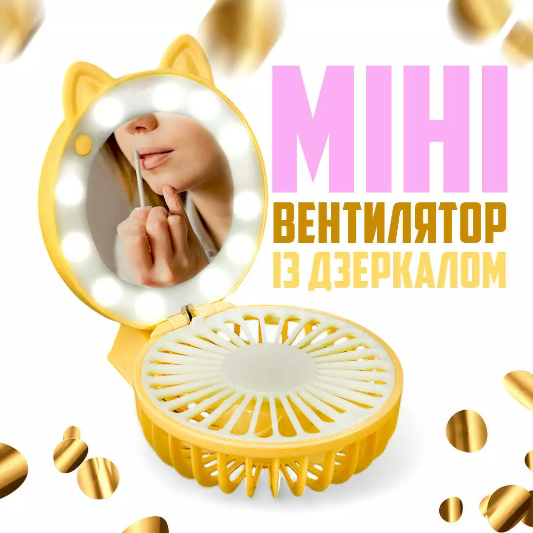 Мини usb вентилятор с зеркалом и подсветкой Beauty Breeze Andowl Q-T171 для макияжа круглое зеркало (Желтый)