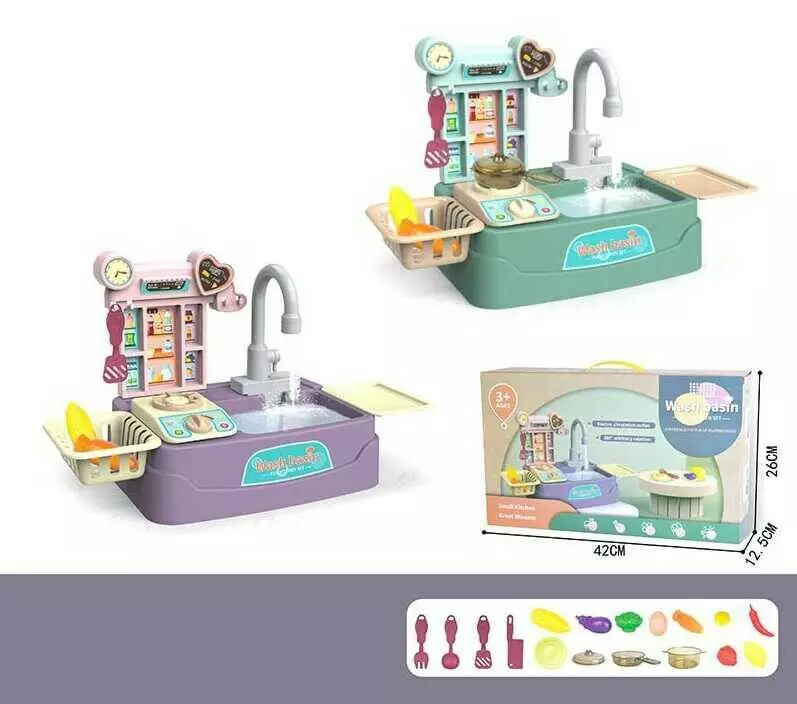 Мийка 566 (24/2) 2 види, автоматична подача води, поличка, столове начиння, муляжі їжі, плитка з тріскачкою, наліпки, в коробці, ВИДАЄТЬСЯ МІКС