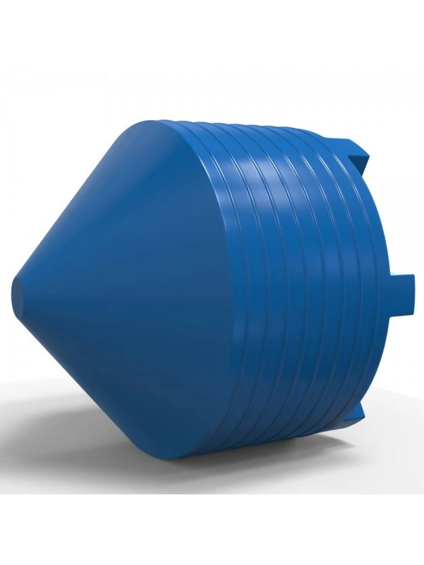 Ємність конусна призначена для стаціонарного використання. Конусне дно дозволяє повністю злити вміст ємності. Каркас металевий, ніжки знімаються. Ємність виготовляється методом ротаційного формування, що робить її суцільнолитою без швів. Матеріал - стійкий до ультрафіолетових променів поліетилен дозволяє експлуатувати ємність як в приміщенні, так і на вулиці при температурі від -20 до +60° С. Призначена для роботи з дуже широким спектром харчових і не харчових речовин: вода, масла, кислоти і т.д. Основною перевагою перед всілякими аналогами, тривалий термін експлуатації (до 50 років). Ємність не іржавіє, не вбирає і не має власного запаху. Передбачені різноманітні варіанти комутації, установки штуцерів і поплавків, легко миється і транспортується. Наявність темного зовнішнього кольору і гладка внутрішня поверхня перешкоджають цвітінню води. Ємність не призначена для роботи під тиском, в зв'язку з цим кришка закривається не герметично. Забороняється зберігати легкозаймисті рідини. Якщо рідина може замерзнути, рекомендується її попередньо злити. Монтувати необхідно на рівну тверду горизонтальну основу, габарити якої не повинні бути менше габаритів ємності. Також необхідно виключити зовнішній фізичний вплив.