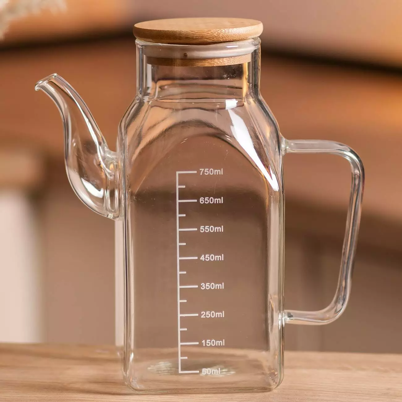 Місткість виготовлена з боросилікатного скла, стійка до перепадів температур і не піддається хімічному впливу. Прозорий корпус дозволяє контролювати кількість вмісту та вчасно поповнювати запаси, а тонкий носик робить заправку салатів та різних страв не просто процесом, а справжнім ефектним дійством, за яким цікаво спостерігати.