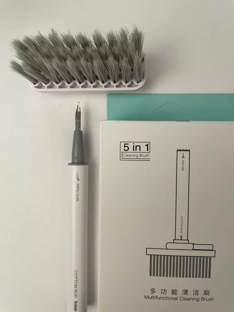 Многофункциональная щетка для чистки гаджетов 5 в 1 – это компактный и удобный набор, предназначенный для бережного ухода за вашими устройствами. Она идеально подходит для очистки клавиатур, наушников, телефонов, планшетов, фотоаппаратов и другой электроники с труднодоступными местами. Благодаря продуманной конструкции и набору насадок щетка эффективно удаляет пыль, грязь и другие загрязнения, не повреждая поверхность техники. Мягкий наконечник, покрытый микрофиброй на 360°, позволяет тщательно очищать мелкие детали, а плотная щеточка бережно убирает пыль из сетки динамика и клавиш.