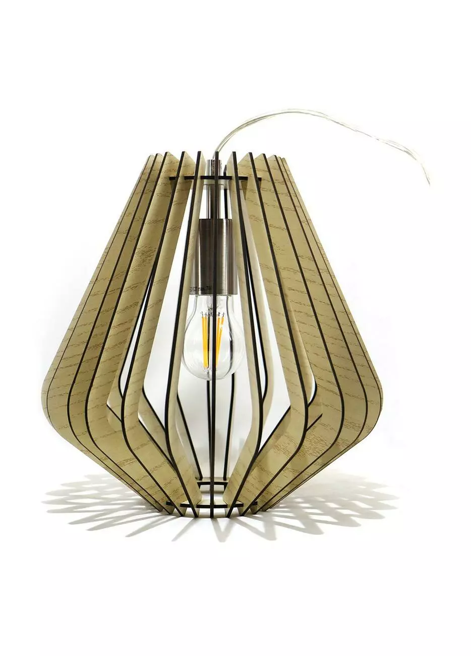 Абажур из тонких полос фанеры. Общая высота светильника 120 см.