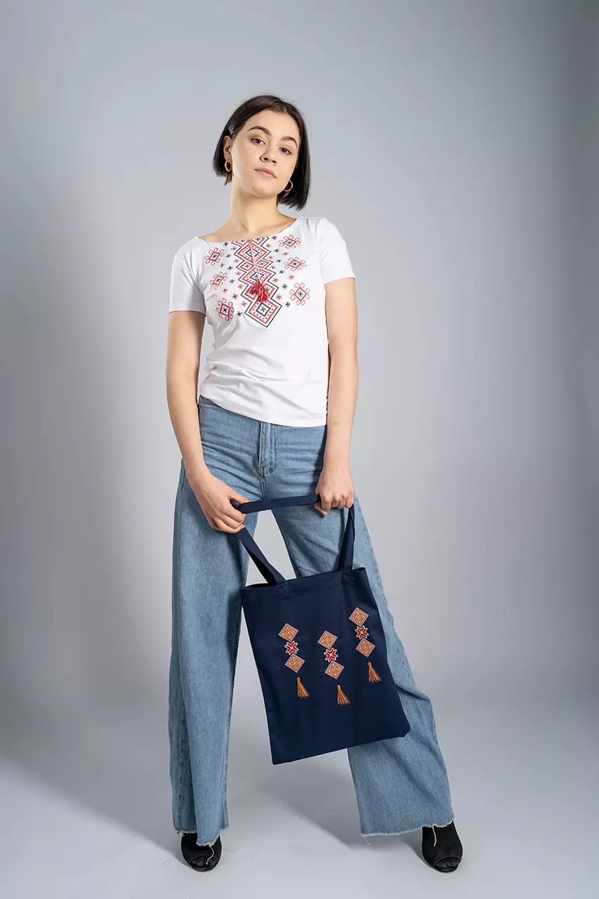 Модна еко-сумка для покупок "Китиці" у синьому кольорі