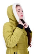 Современная плащевка в сочетании с плотным утеплителем, отделкой из белого меха (овчина) по капюшону, вязаным манжетом с отверстием для пальца создают постоянное ощущение тепла и комфорта.