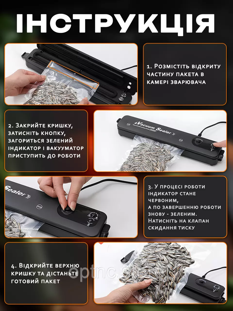 комплекте набор из вакуумных пакетов, что позволит сразу же