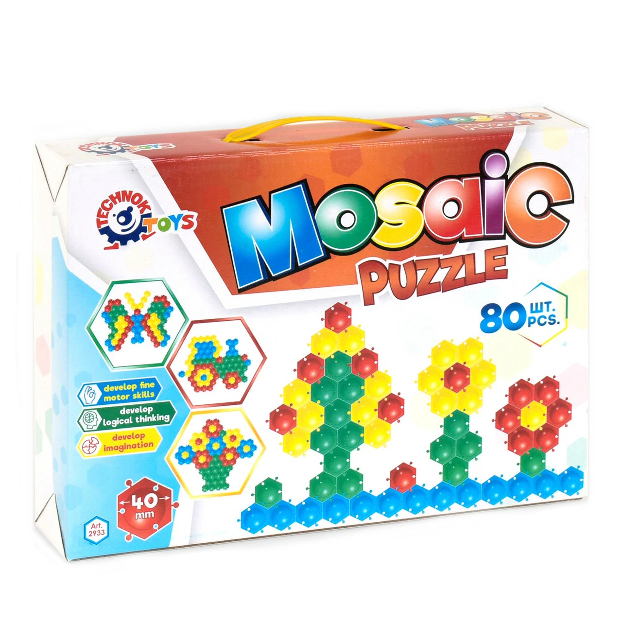 Мозаика-пазлы состоит из крупных цветных шестиугольников (80