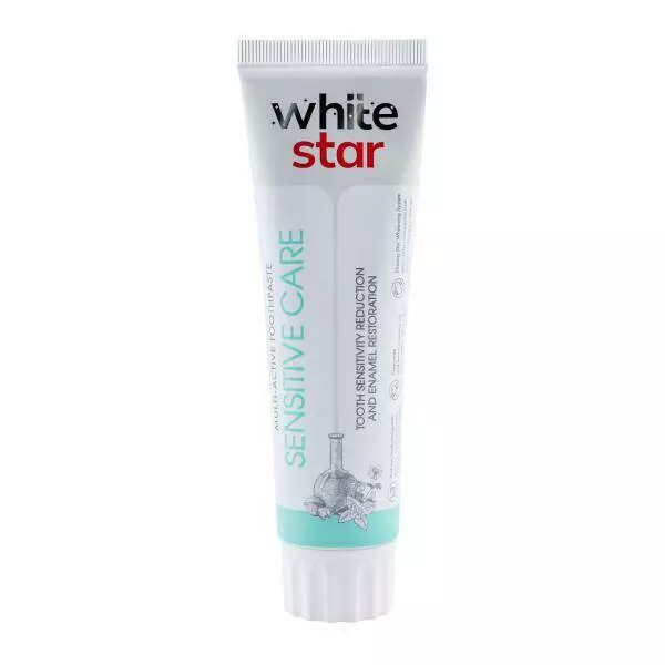 White Star Sensitive Care – зубная паста, которая обеспечивает эффективное снижение чувствительности зубов и способствует восстановлению эмали. Благодаря уникальной формуле с натуральными компонентами паста укрепляет эмаль, успокаивает чувствительные зубы и уменьшает раздражение десен. Она идеально подходит для людей с повышенной чувствительностью зубов, обеспечивая защиту и комфорт во время ежедневного ухода за полостью рта.