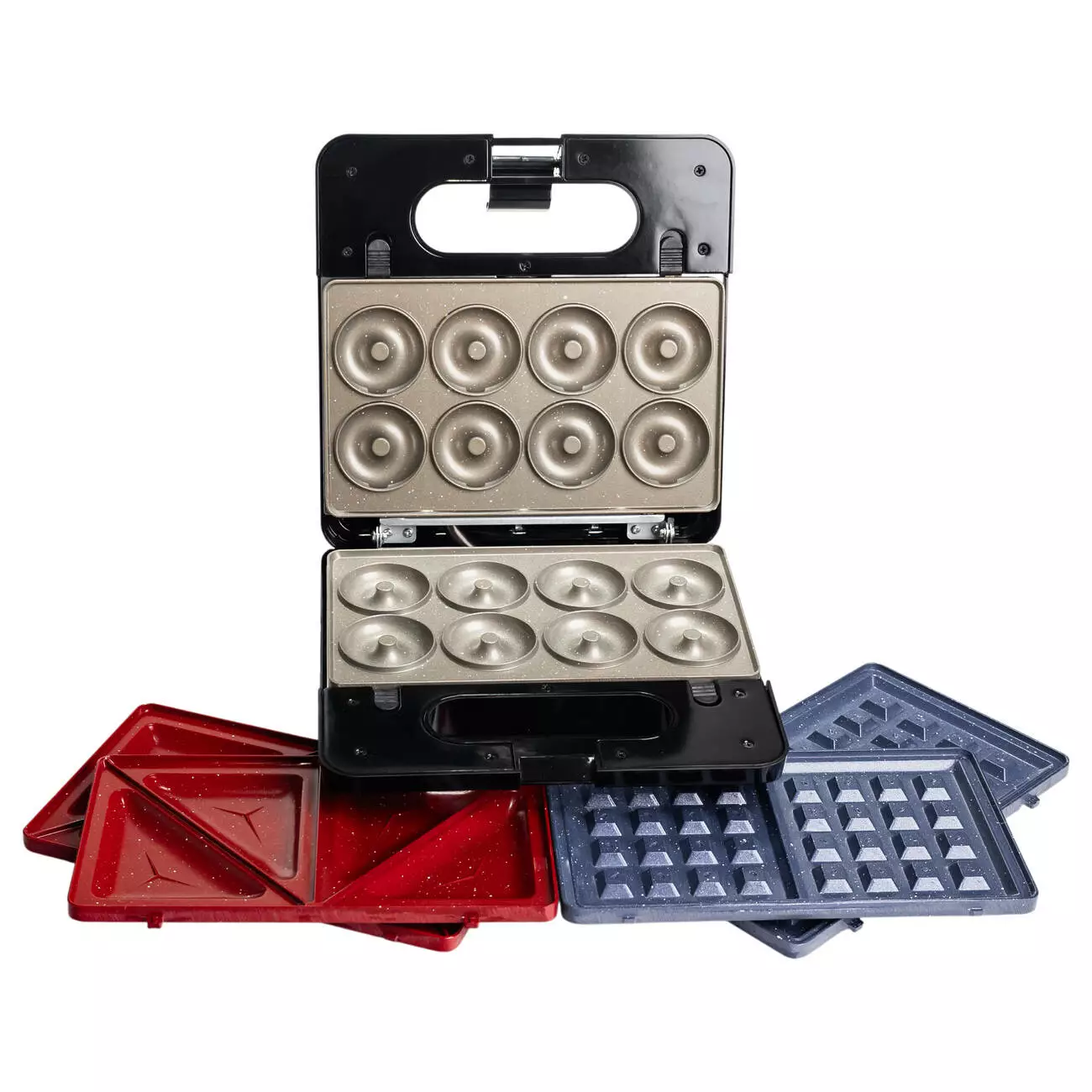 Мультипекар Sokany SK-08153 з трьома змінними пластинами призначений для приготування сендвічів, вафель та інших закусок. Робочі поверхні з антипригарним покриттям забезпечують рівномірний нагрів і спрощують очищення після використання. Корпус виготовлений із пластику з елементами з нержавіючої сталі та розрахований на регулярну експлуатацію.