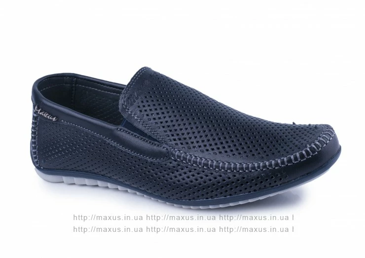 Мужски летние мокасины Maxus. Модель F-2 кожа синие с перфорацией.