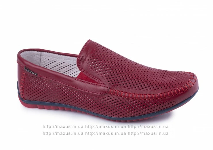Мужские летние мокасины Maxus. Модель F-2 кожа красные с перфорацией.