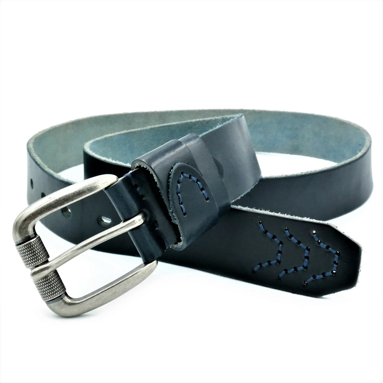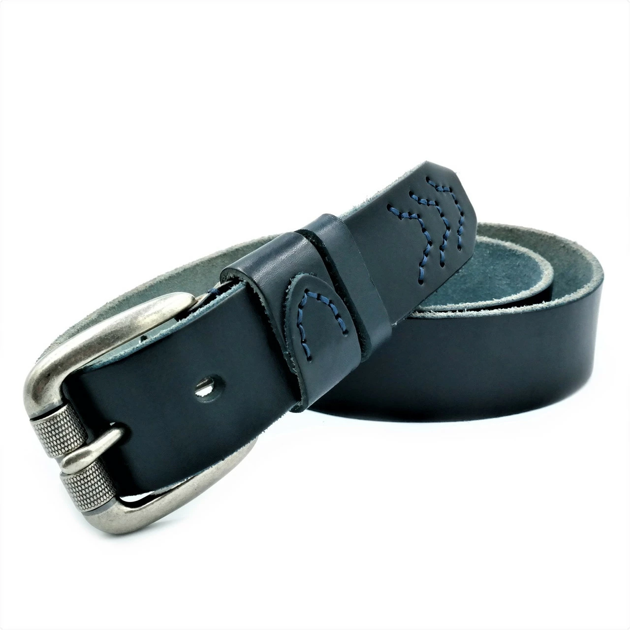 Мужской кожаный ремень Weatro new-m-40k-021 Тёмно-синий