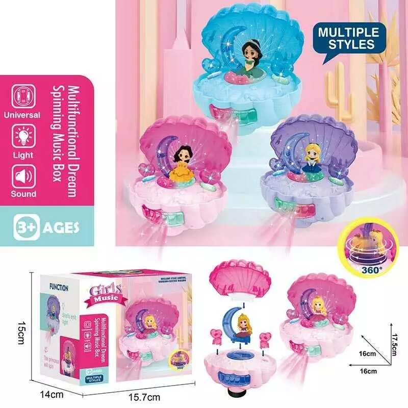 Музична іграшка QF 07-10 (72/2) “Мушля”, 3 види, фігурка героя, підсвічування, музика, катається, обертається, на батарейках, в коробці, ВИДАЄТЬСЯ ТІЛ